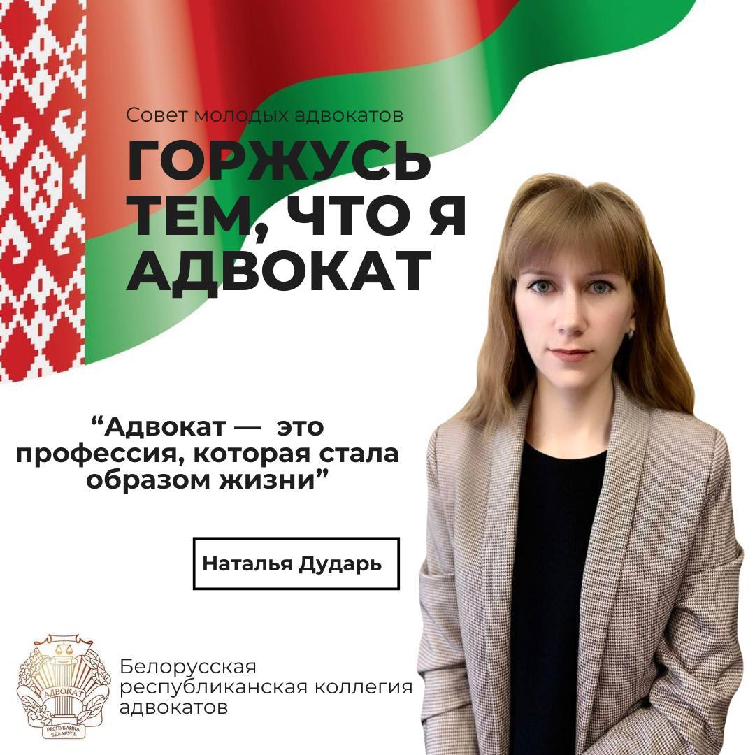 Сегодня в проекте совета молодых адвокатов Белорусской республиканской коллегии адвокатов «ГОРЖУСЬ ТЕМ, ЧТО Я АДВОКАТ» адвокат, заведующий юридической консультацией Свислочского района Наталья Дударь рассказывает почему выбрала свою профессию и гордится ею: