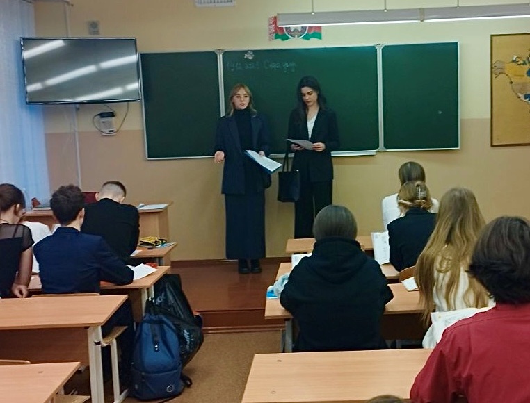 Стажёры Гродненской областной коллегии адвокатов Алина Арбузова и Елена Москаленко провели профориентационную встречу с учащимися 11 класса средней школы № 37 г.Гродно на тему: «О важности осознанного выбора будущей профессии».