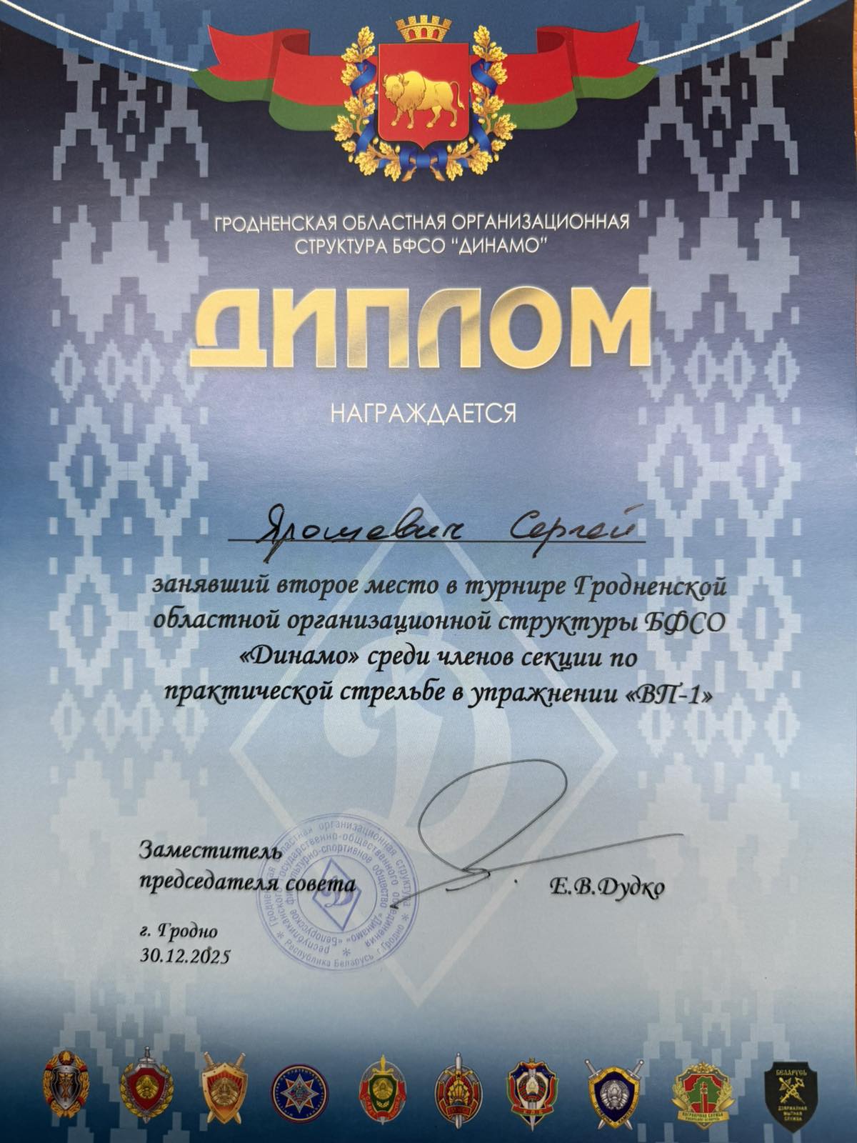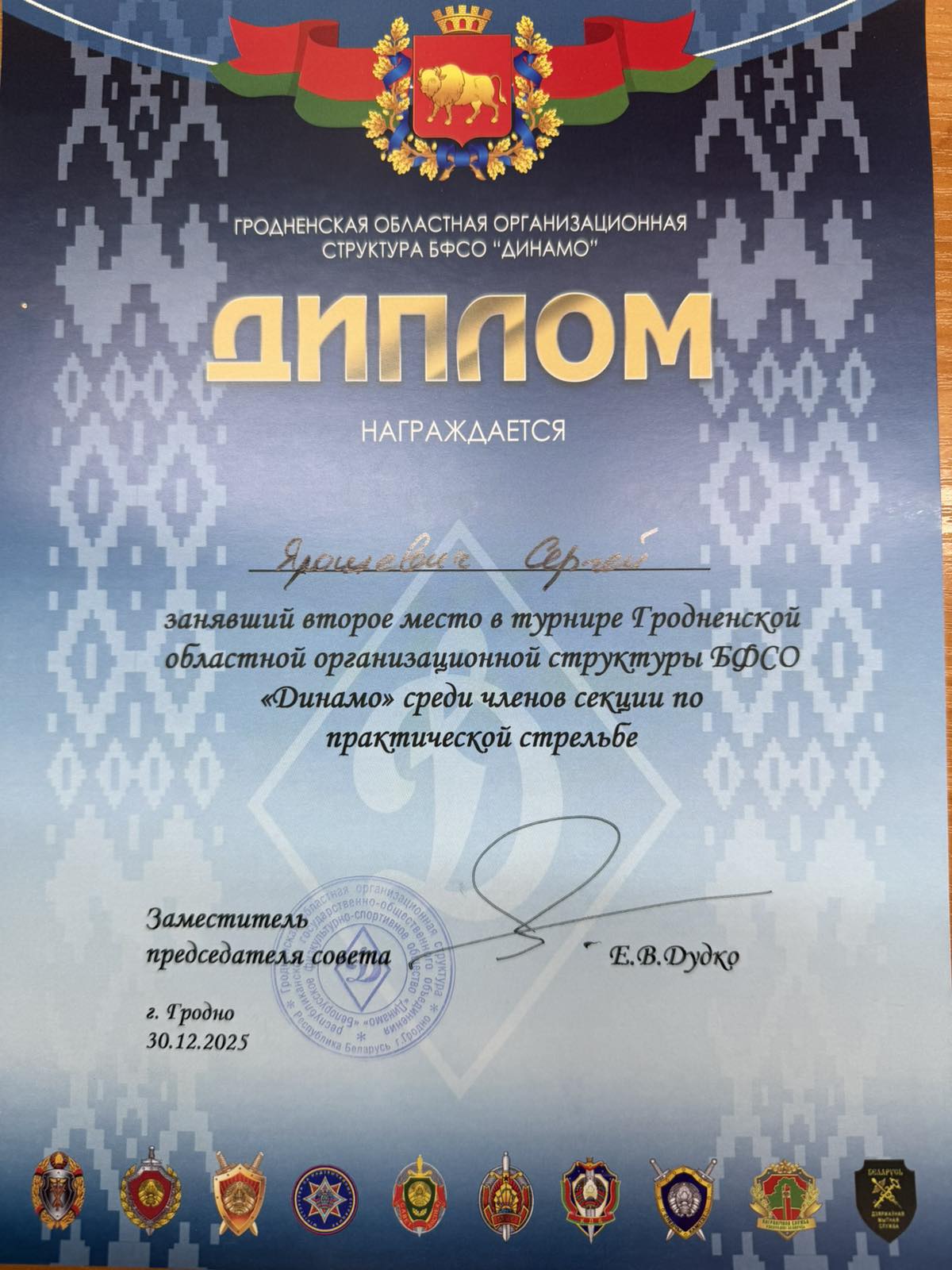 В тире спортивно-стрелкового комплекса Гродненской областной организационной структуры БФСО «Динамо» 30 декабря прошел чемпионат по стрельбе среди членов секции по практической стрельбе. Участие в чемпионате принял адвокат специализированной юридической консультации «ЮрЭксперт» Ярошевич Сергей Георгиевич.
