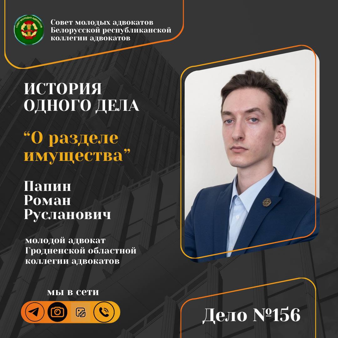 Сегодня в рубрике «История одного дела» совета молодых адвокатов Белорусской республиканской коллегии адвокатов представлено дело «О О разделе имущества» из практики адвоката юридической консультации Гродненского района, члена совета молодых адвокатов областной коллегии Романа Папина.