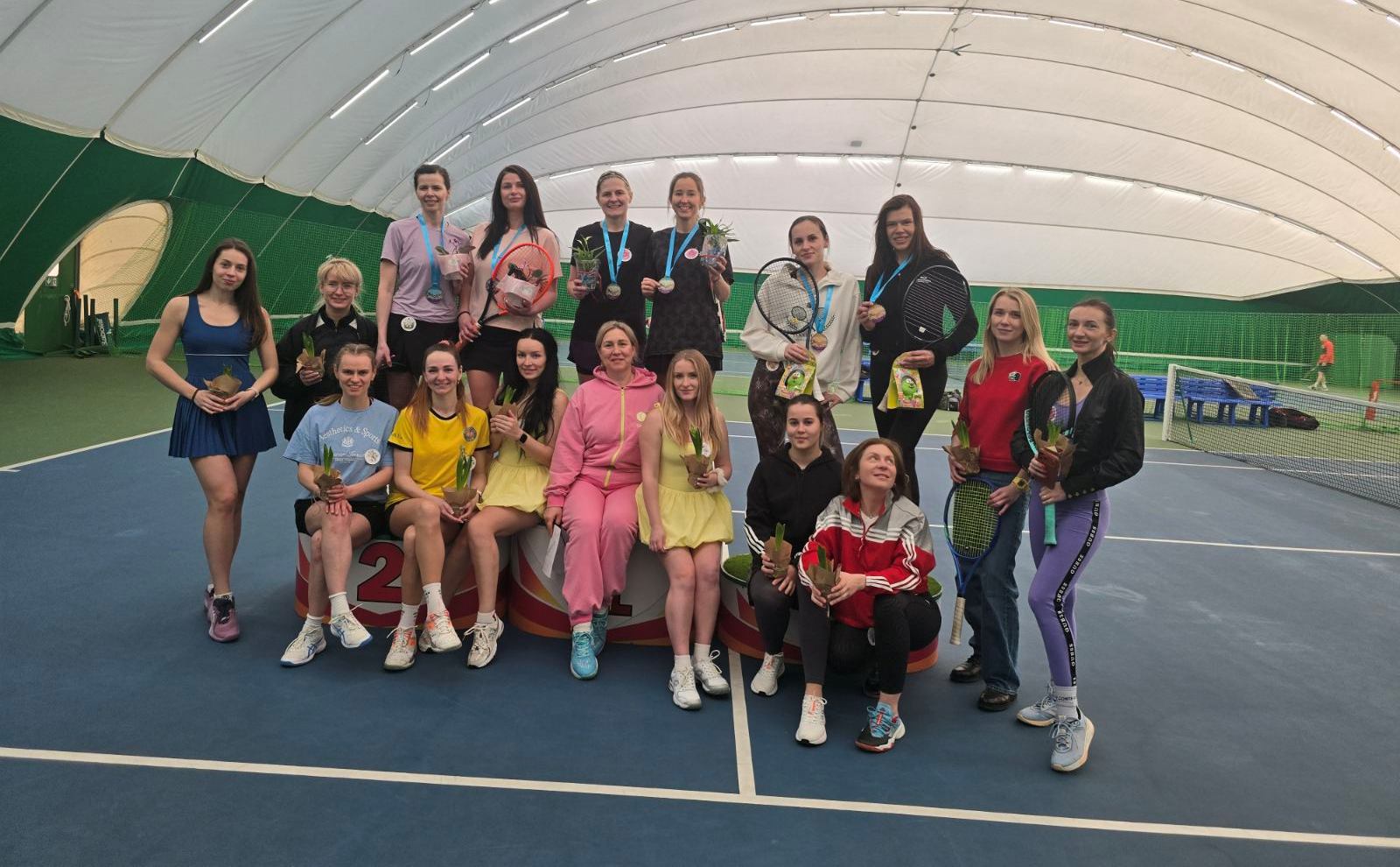 Вчера в Скиделе прошел необычный женский парный турнир по большому теннису, посвященный весеннему равноденствию. Вместо классического формата организаторы подготовили настоящий марафон: каждая пара сыграла пять интенсивных игр по 30 минут. Среди участников была Антоненко Юлия Владимировна — адвокат по профессии и страстная теннисистка-любительница. Вместе с партнершей они не просто выдержали эту нагрузку, но и заняли первое место, доказав, что выносливость и стратегия важнее всего.