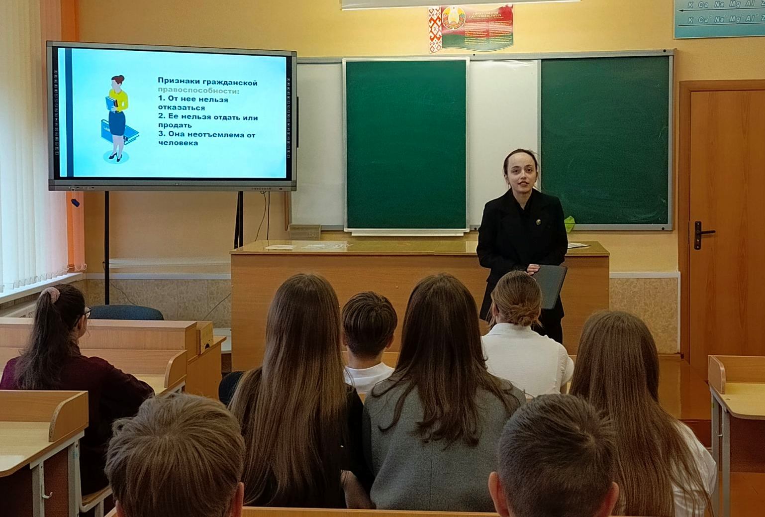 Адвокат юридической консультации Новогрудского района, член совета молодых адвокатов областной коллегии Шкут Юлия провела для учащихся 10-11 классов средней школы №4 имени П.А.Мазуры г. Новогрудка урок правовых знаний на тему: «Основы гражданских прав и обязанностей несовершеннолетних».