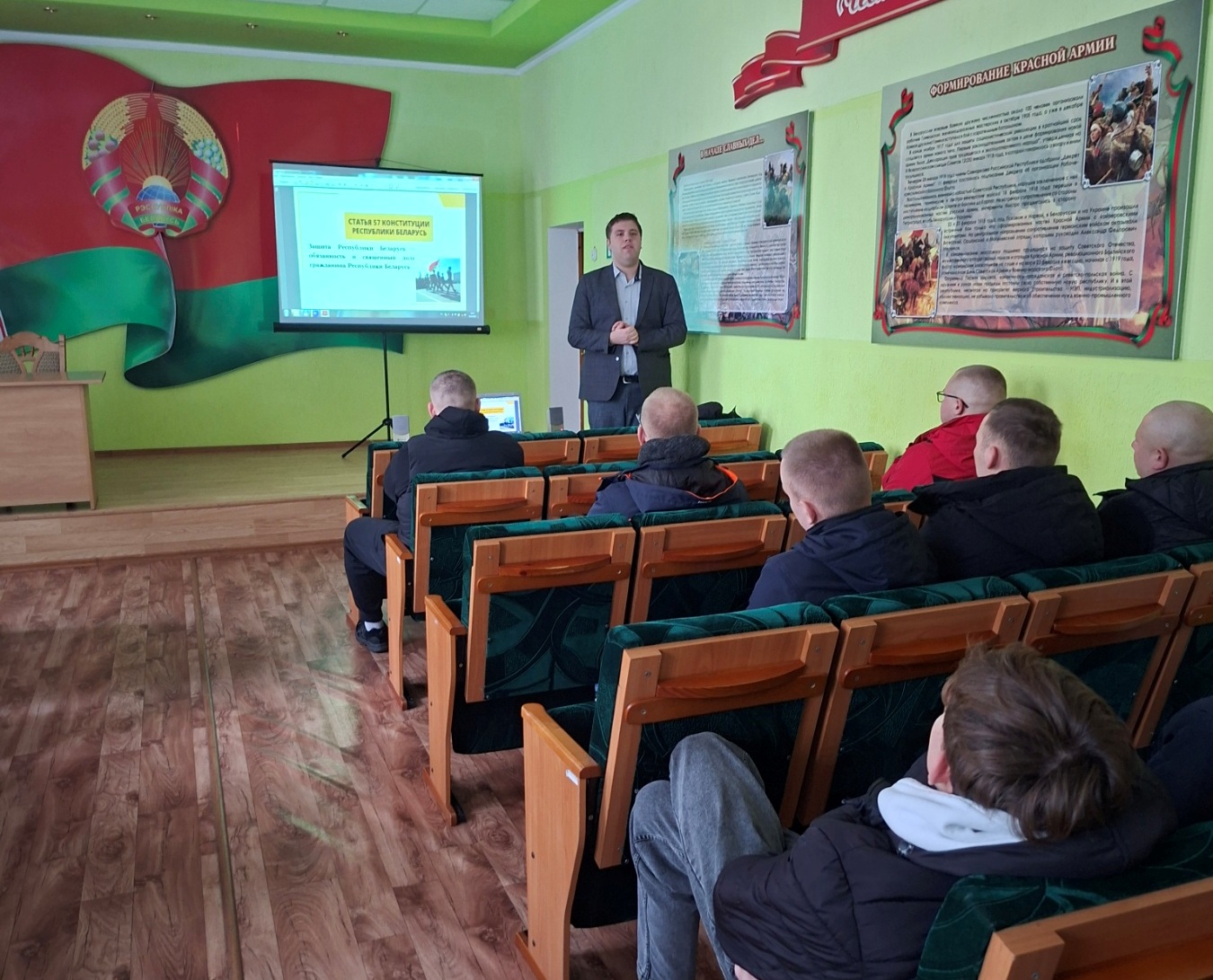 Сегодня с призывниками встретился адвокат юридической консультации Октябрьского района г. Гродно, член совета молодых адвокатов областной коллегии Гущин Роман Иванович.