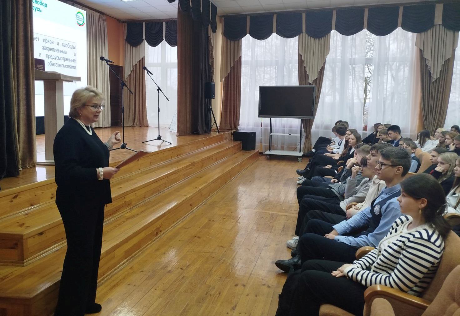 С целью формирования у учащихся осознанной гражданской позиции, чувства патриотизма и ответственности за будущее своей страны, развития у школьников умения анализировать полученную информацию, формулировать и высказывать собственные суждения по вопросам развития гражданского общества заведующий юридической консультацией Волковысского района Бахорина Диана Ивановна в городской гимназии № 1 провела для старшеклассников информационный час на тему «Быть достойным гражданином Республики Беларусь – значит грамотно пользоваться своими правами, честно и добросовестно исполнять свои обязанности».