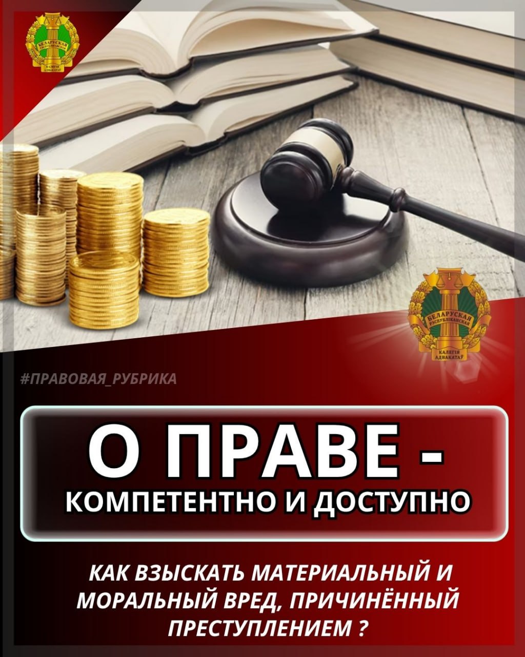 Читайте на сайте БРКА https://brka.by/news/kak-vzyskat-materialnyy-i-moralnyy-vred-prichinyennyy-prestupleniem-/